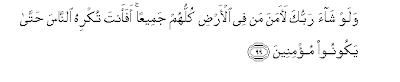 "Dan kalau Tuhan mahu, nescaya orang yang ada di bumi ini akan beriman seluruhnya. Apakah engkau hendak memaksa manusia supaya mereka menjadi orang-orang yang beriman? "